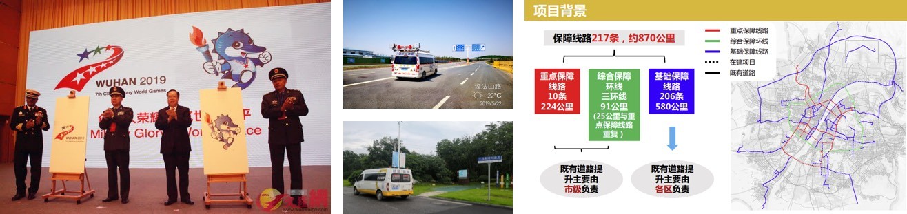 第七屆世界軍人運(yùn)動(dòng)會(huì)于2019年在武漢舉行,城建委負(fù)責(zé)武漢軍運(yùn)會(huì)保障線路路面整治相關(guān)導(dǎo)則和方案編制工作。路源檢測(cè)公司承擔(dān)10條重點(diǎn)保障線路、三環(huán)線綜合保障線路、基礎(chǔ)保障線路路面檢測(cè)及附屬設(shè)施調(diào)查服務(wù),合計(jì)單車(chē)道里程超過(guò)2000公里。