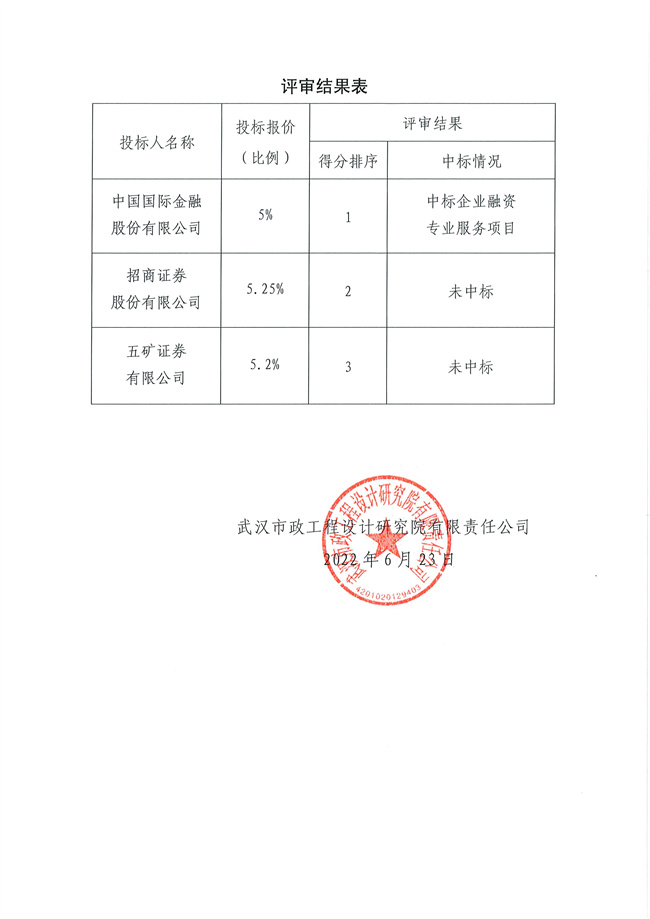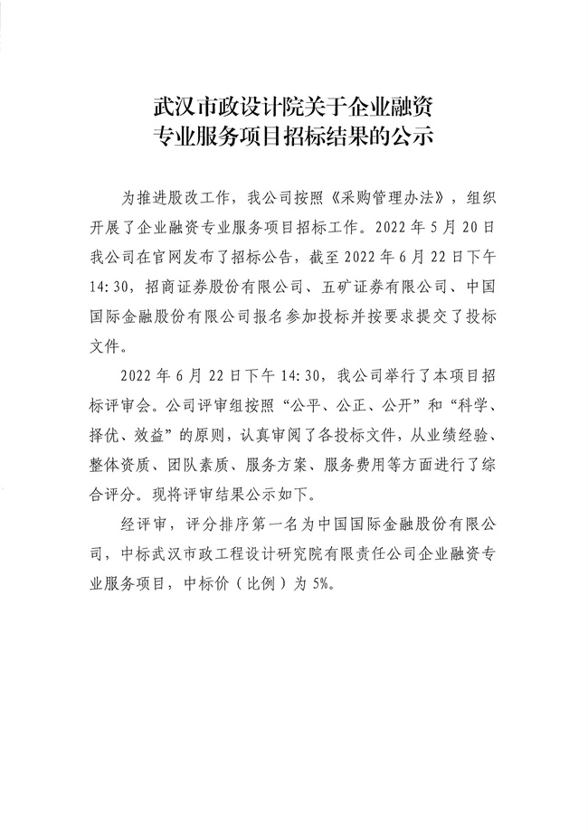 關于企業(yè)融資專業(yè)服務項目招標結果的公示